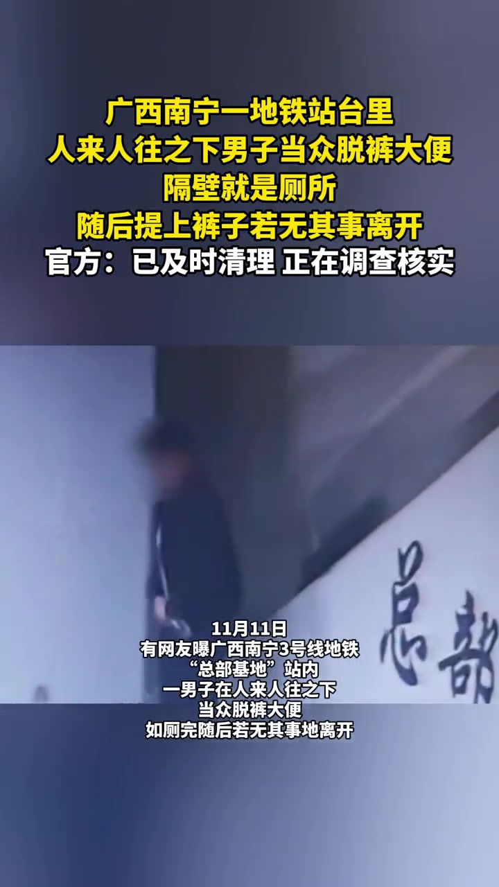 广西南宁一地铁站台里,人来人往之下男子当众脱裤大便!!