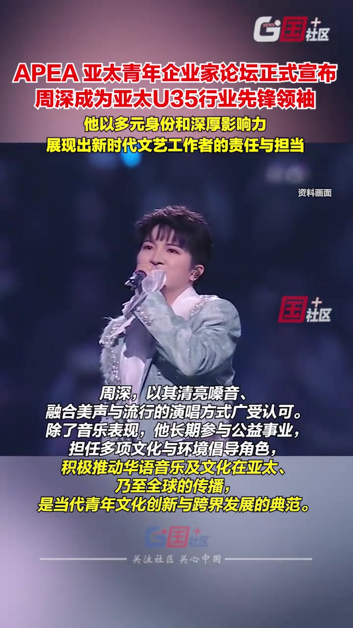 APEA亚太青年企业家论坛正式宣布,周深成为亚太U35行业先锋领袖