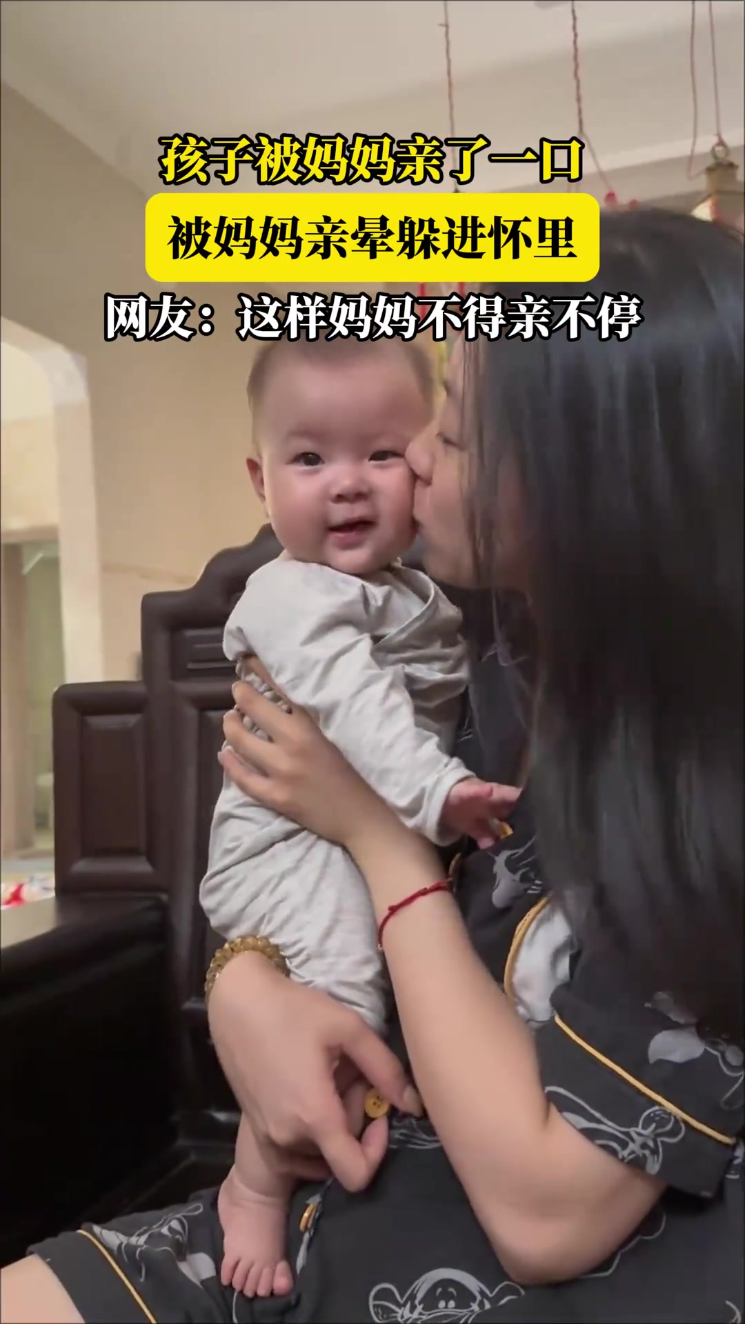 孩子被妈妈亲了一口,被妈妈亲晕躲进怀里,网友:这样不得亲不停