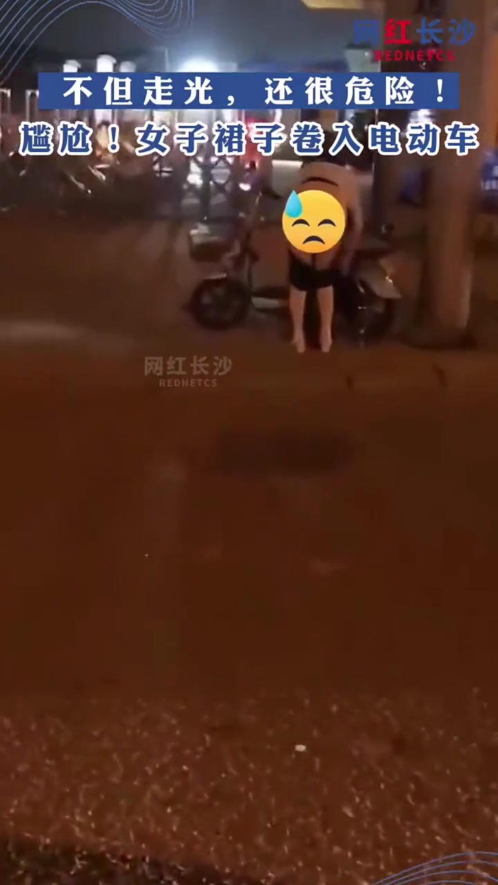 尬尴!女子裙边卷入电动车,只能脱下裙子在街边处理!