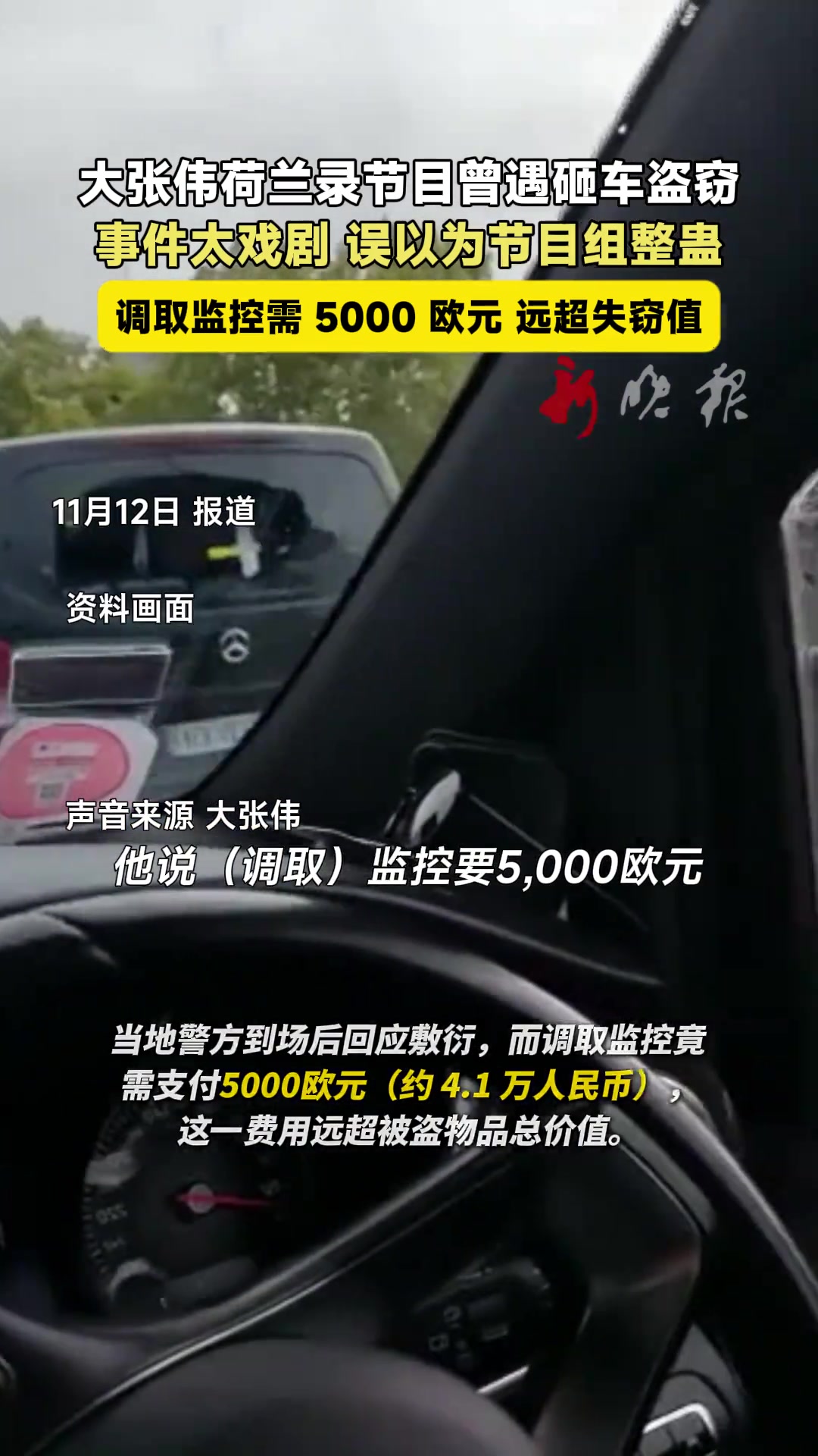 大张伟荷兰录节目曾遇砸车盗窃 事件太戏剧