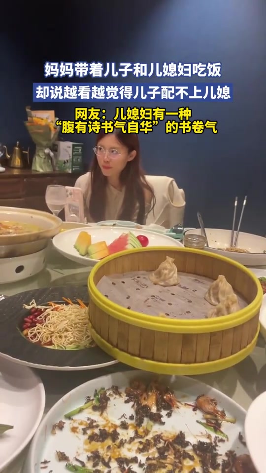 妈妈带着儿子和儿媳妇吃饭,却说越看越觉得儿子配不上儿媳
