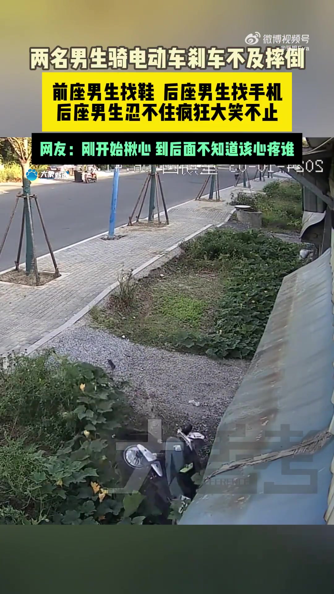 两男子骑电动车摔倒,门牙脱落