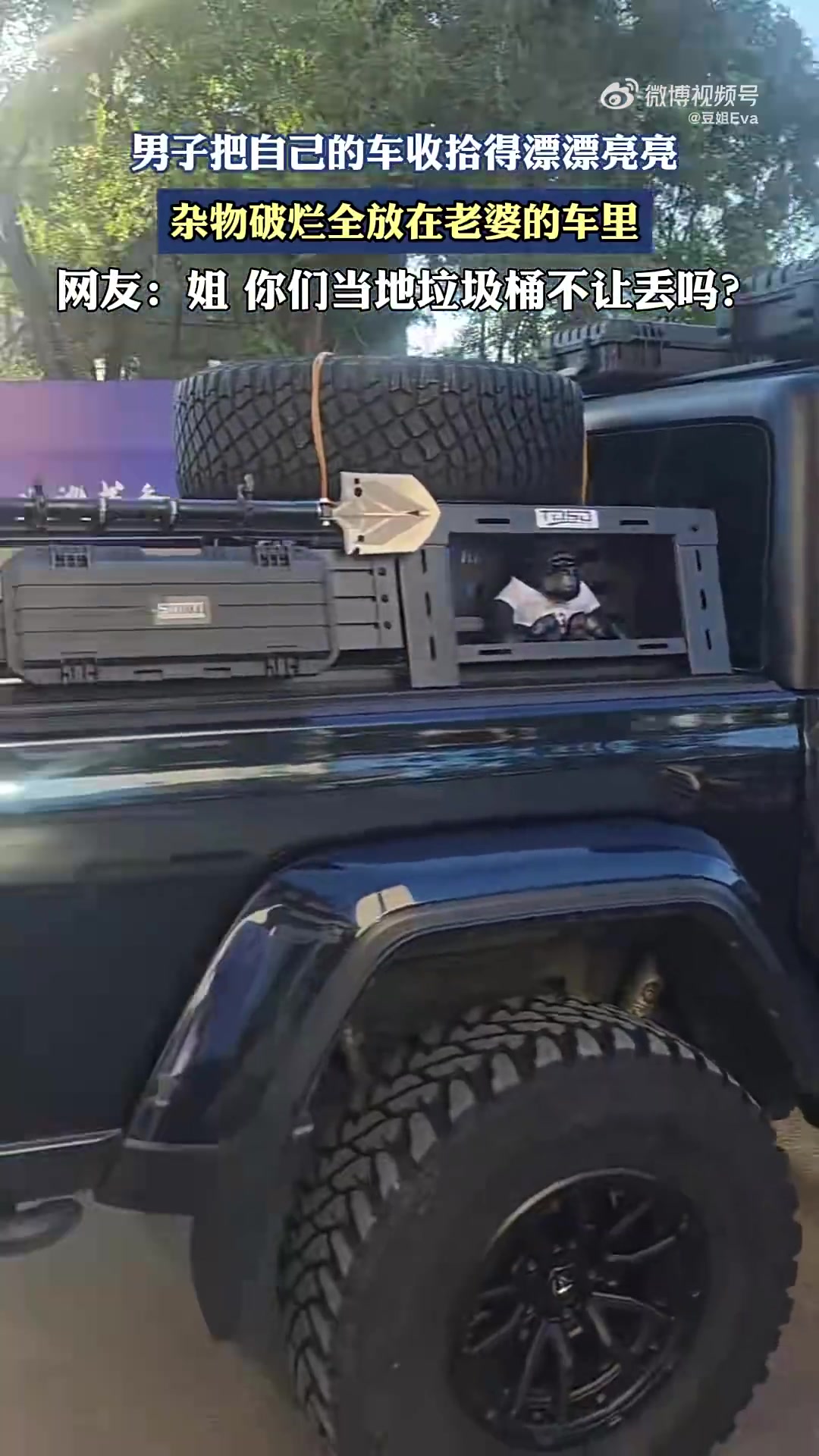 男子将自己车辆收拾漂亮,把杂物放老婆车内