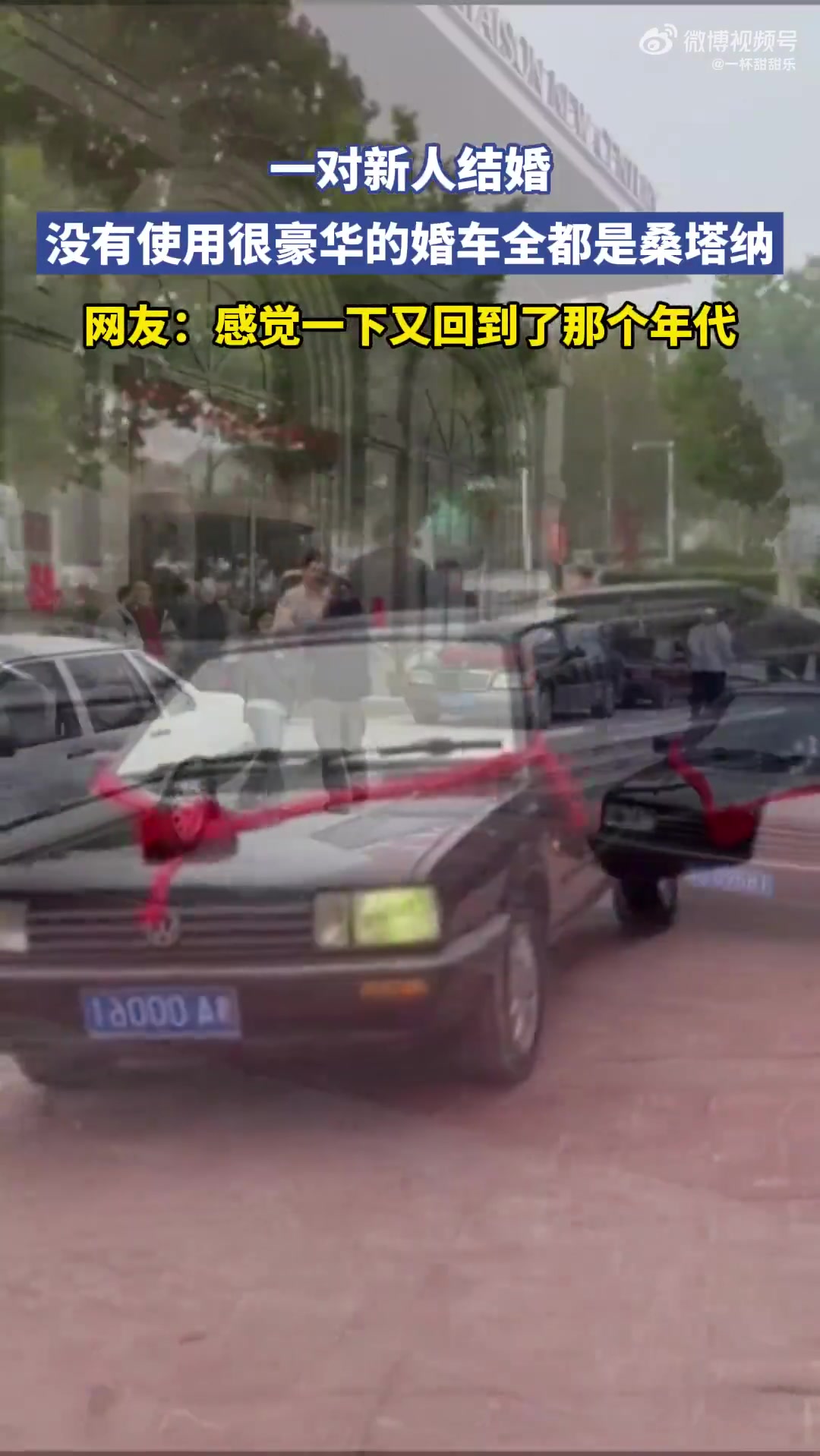 一对新人结婚,没有使用很豪华的婚车全都是桑塔纳