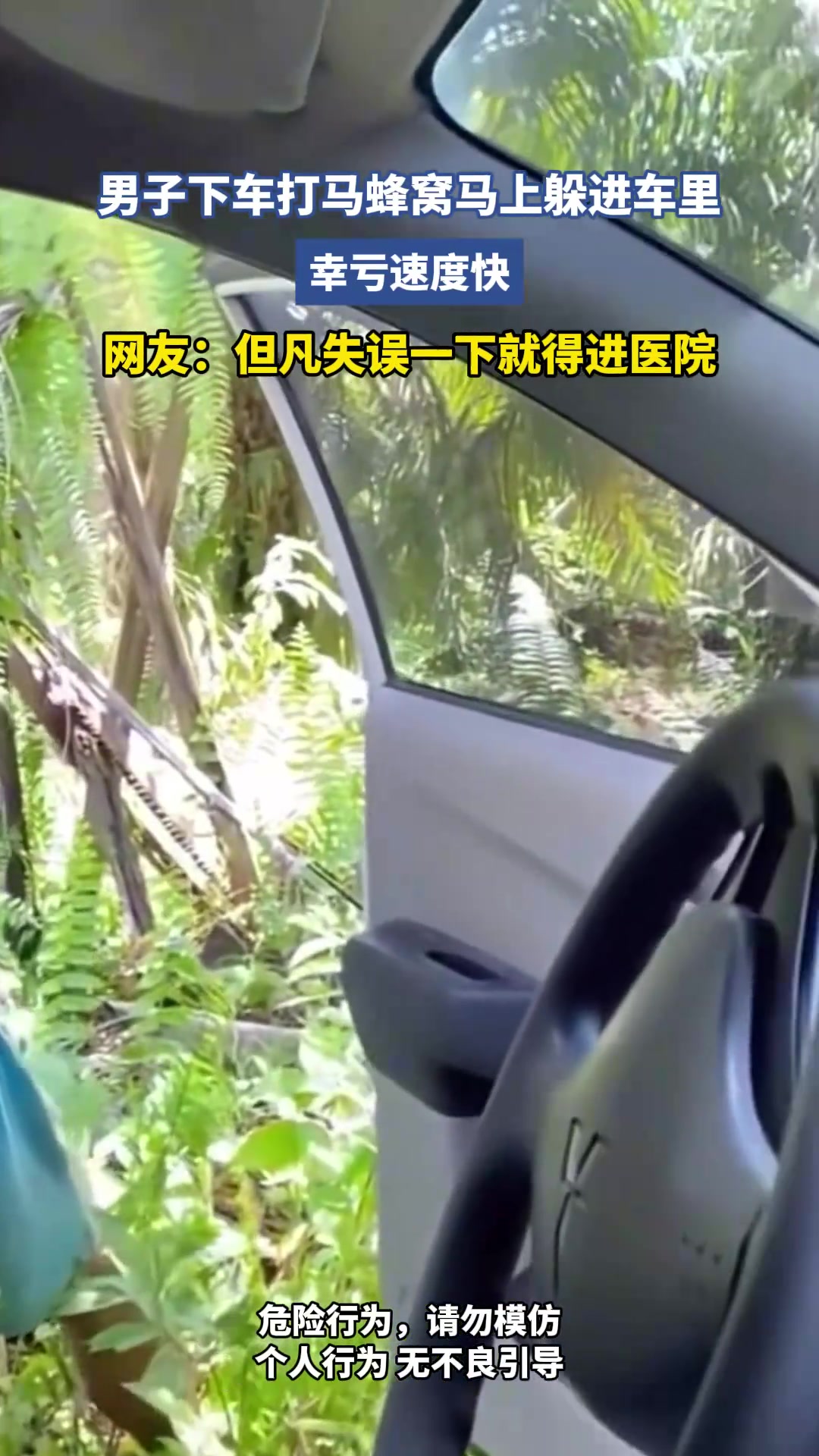 男子下车打马蜂窝马上躲进车里,一点失误都要住院