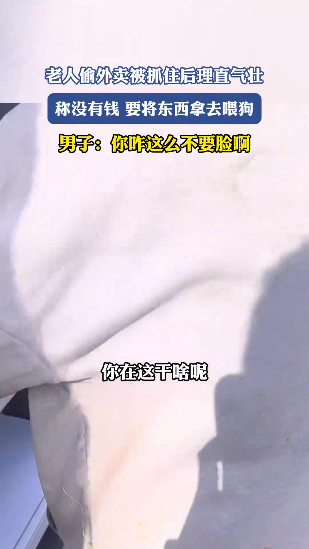 老人偷外卖被抓住后理直气壮,称没有钱要将东西拿去喂狗!