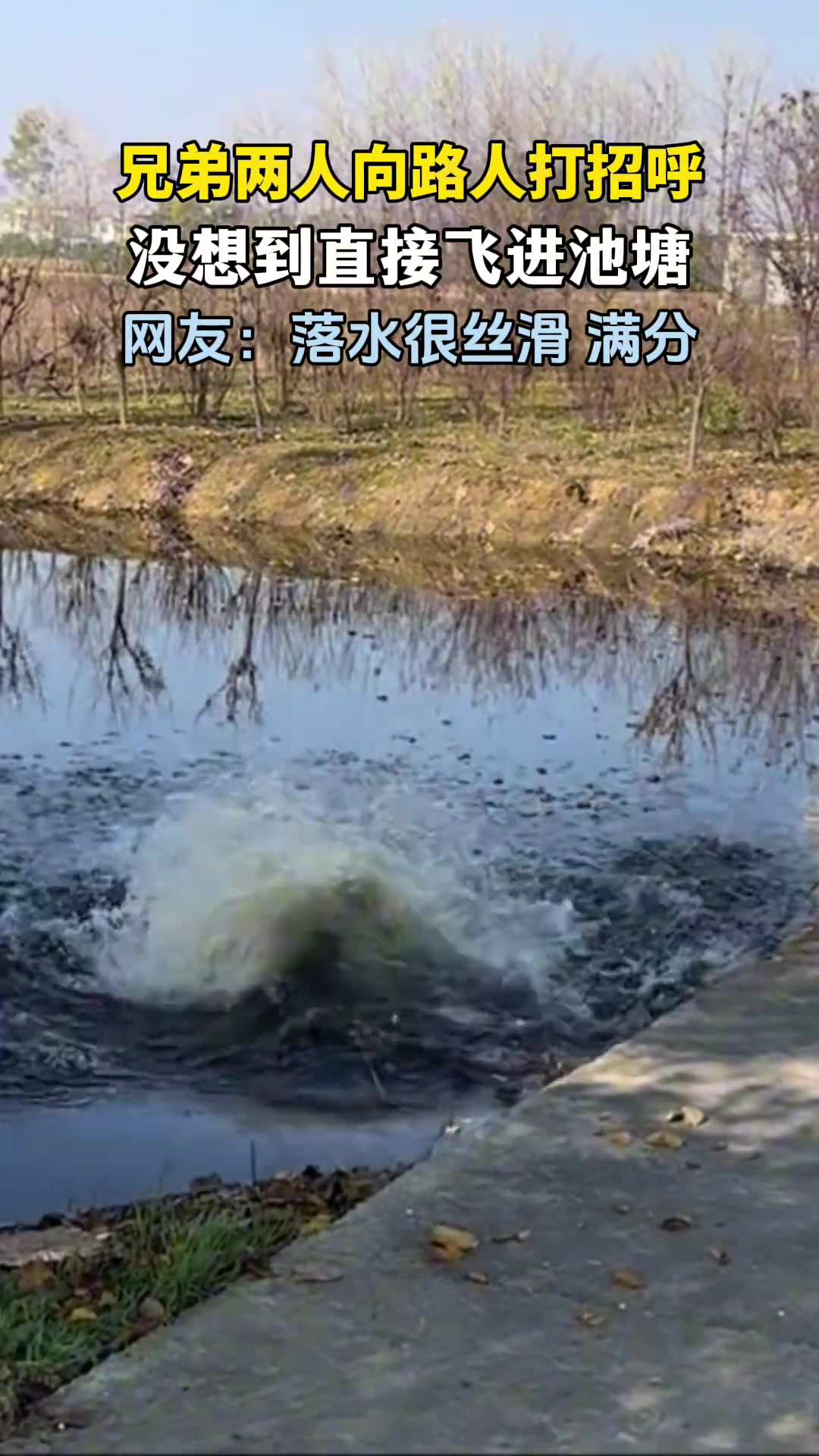 丝滑落水!兄弟两人向路人打招呼,没想到直接掉进水里...