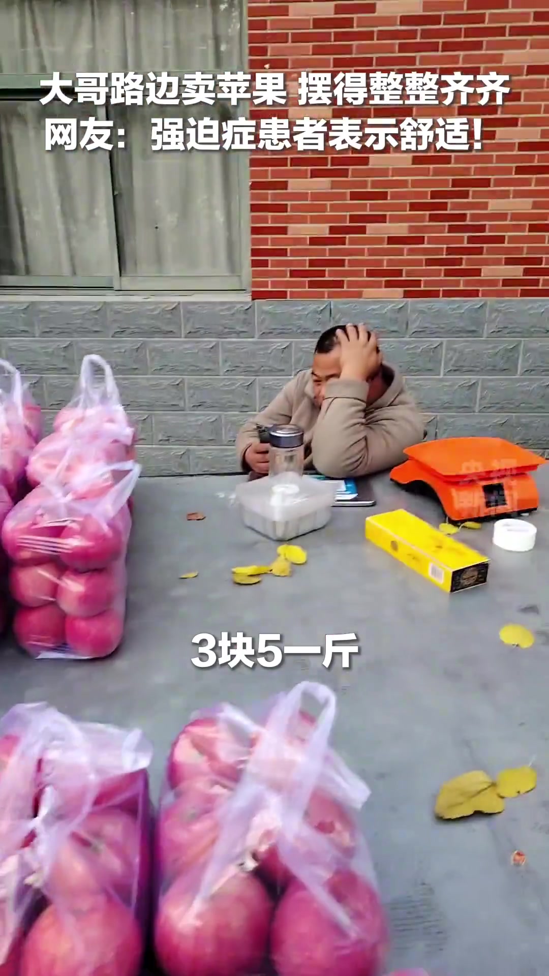 大哥路边摆摊卖苹果,摆得这叫一个整齐!
