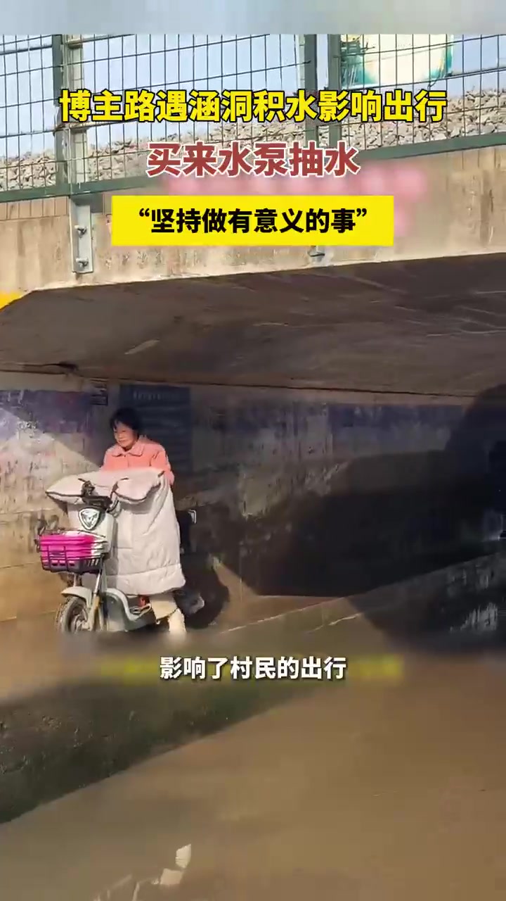博主路遇涵洞积水,直接买来水泵和老乡一起抽水方便村民出行