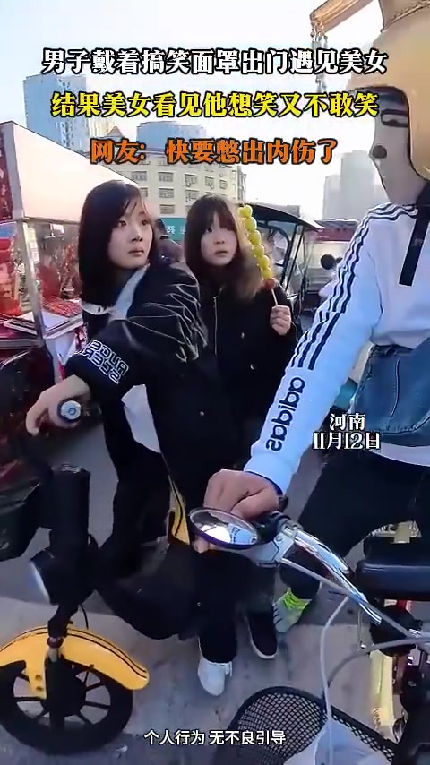 男子戴着搞笑面罩出门遇见美女,结果美女看见他想笑又不敢笑