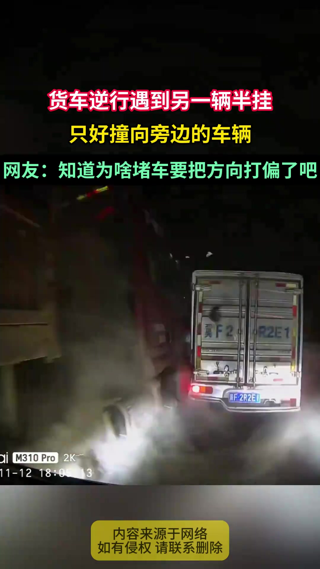 货车逆行遇到另一辆半挂,只好撞向旁边的车辆