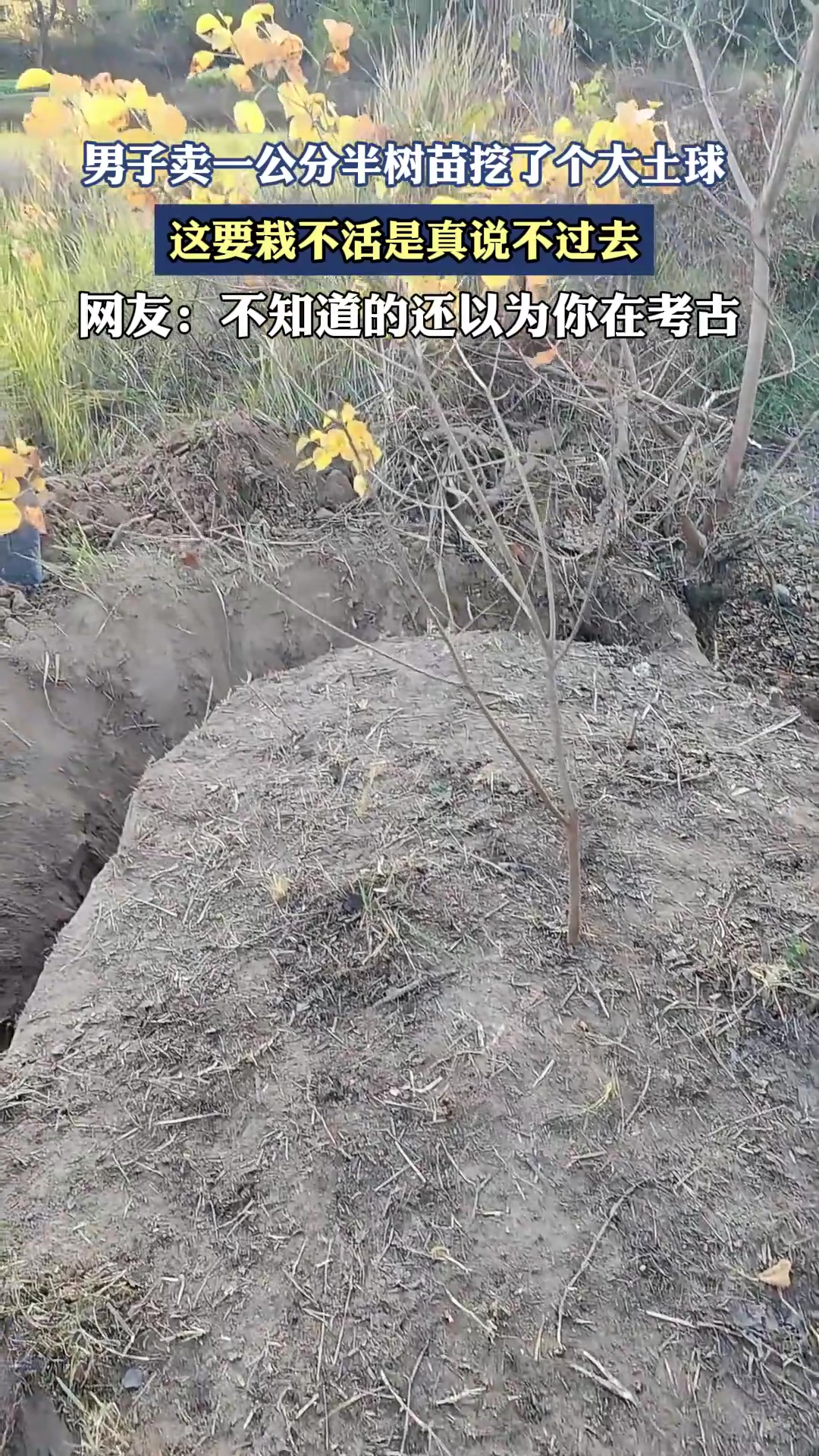 男子卖一公分半树苗挖了个大土球,这要栽不活是真说不过去