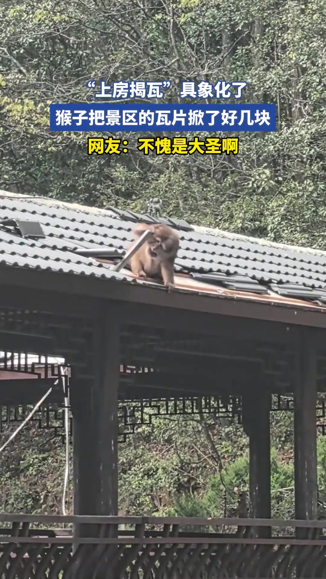 “上房揭瓦”具象化了,猴子把景区的瓦片掀了好几块
