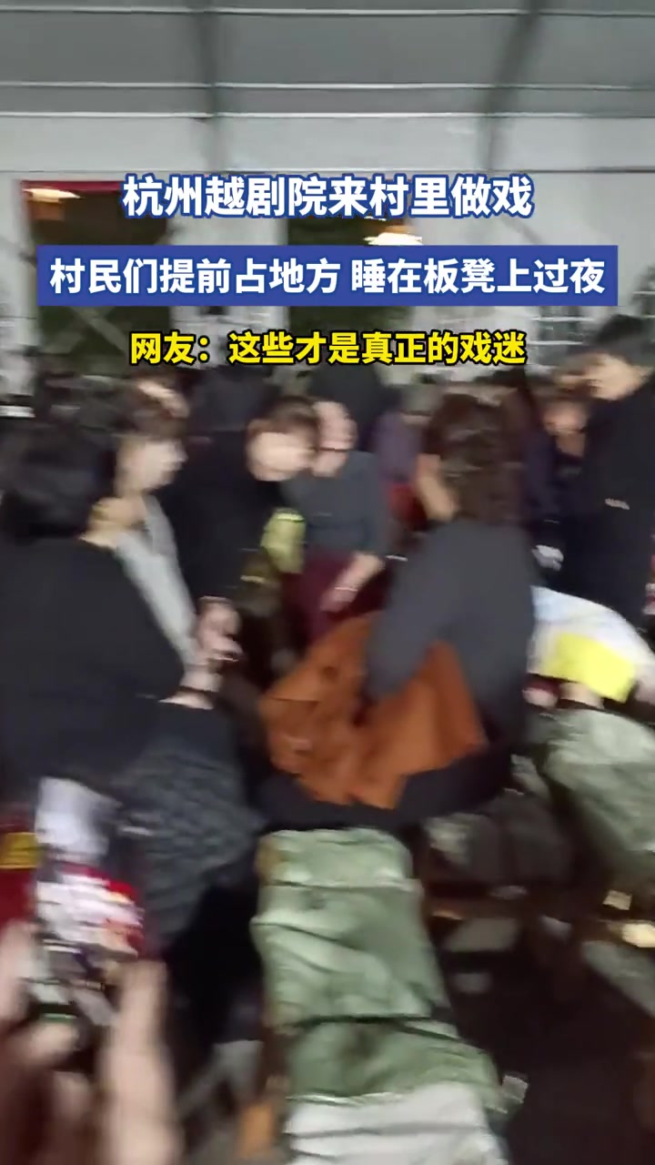 杭州越剧院来村里做戏,村民们提前占地方,睡在板凳上过夜!