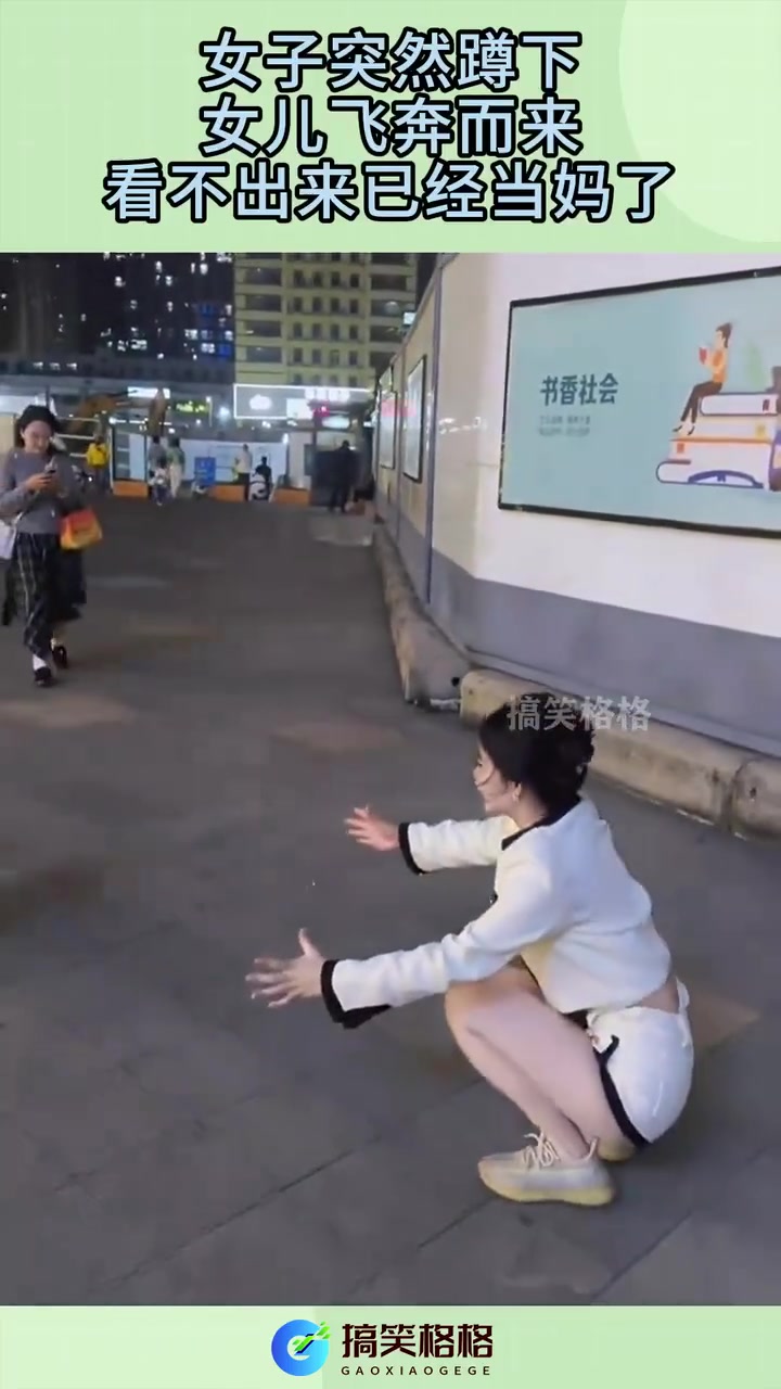 女子突然蹲下,女儿飞奔而来,看不出来已经当妈了!