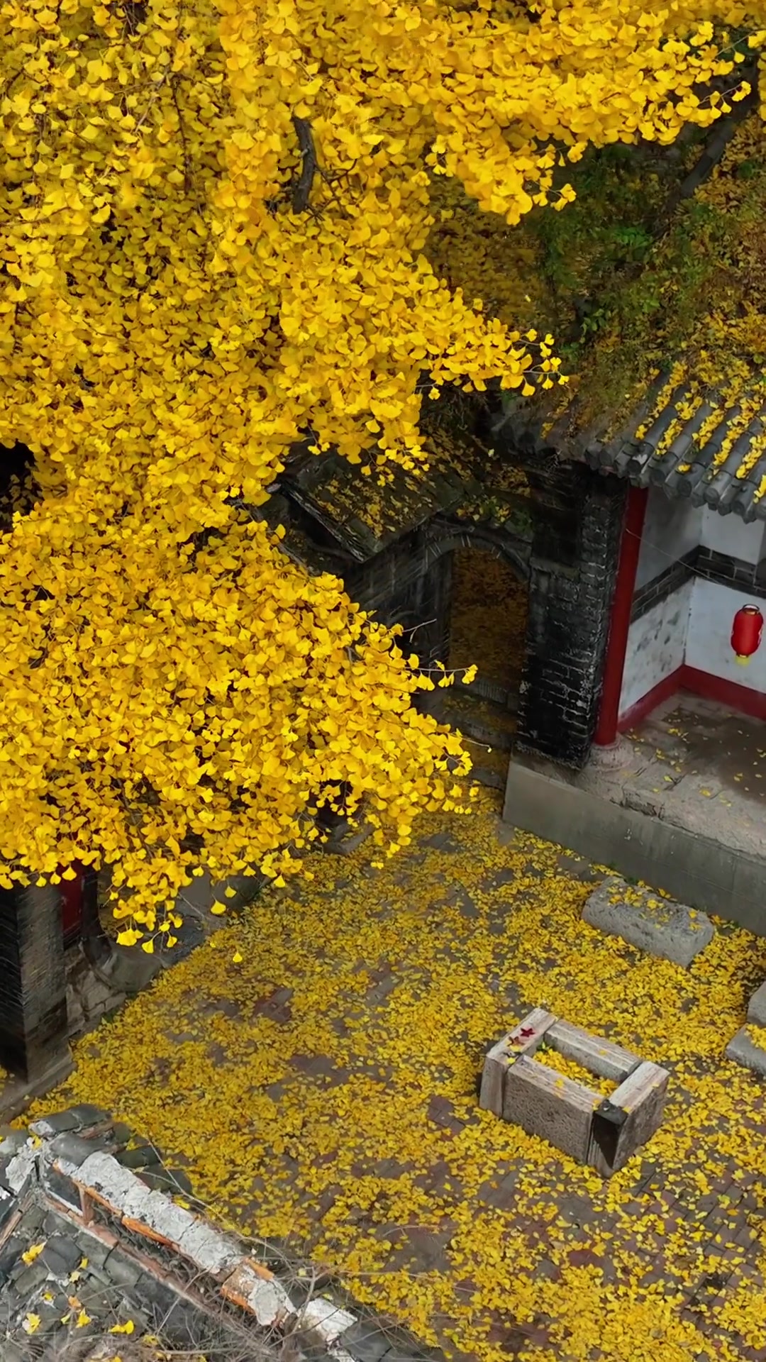 千年银杏炫金装,影映红墙韵自长。