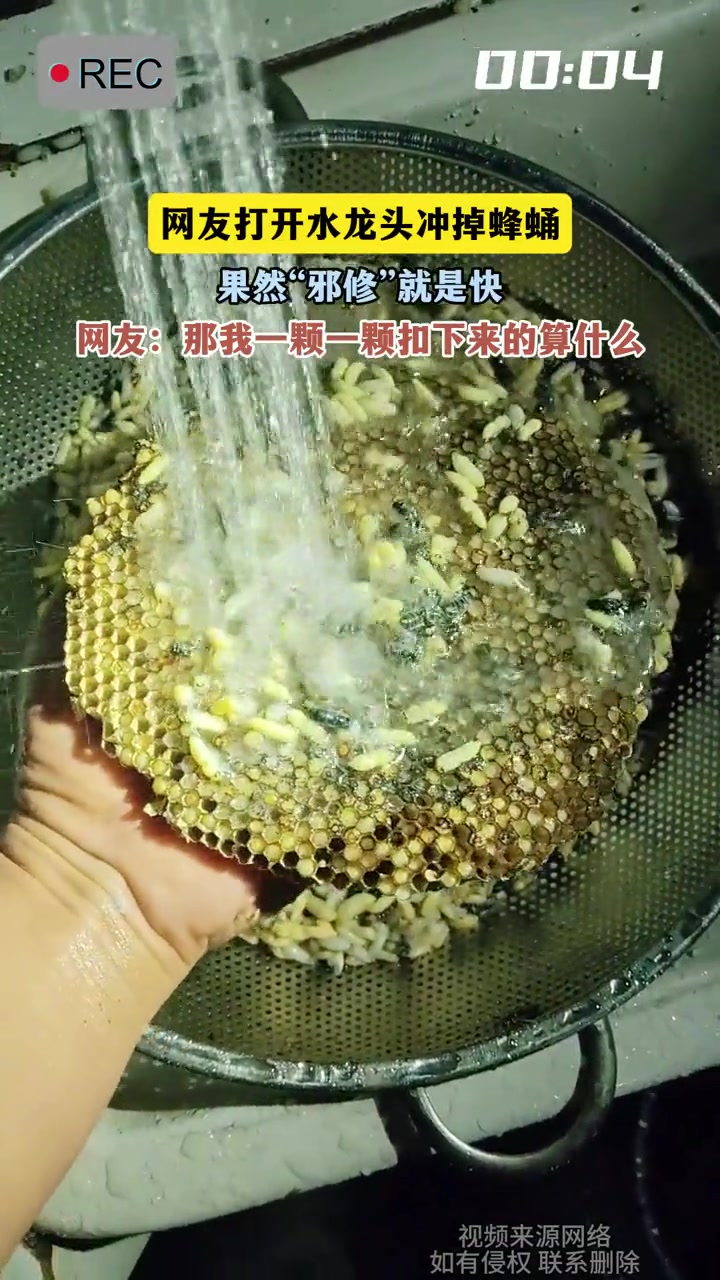 网友打开水龙头冲掉蜂蛹,果然“邪修”就是快!