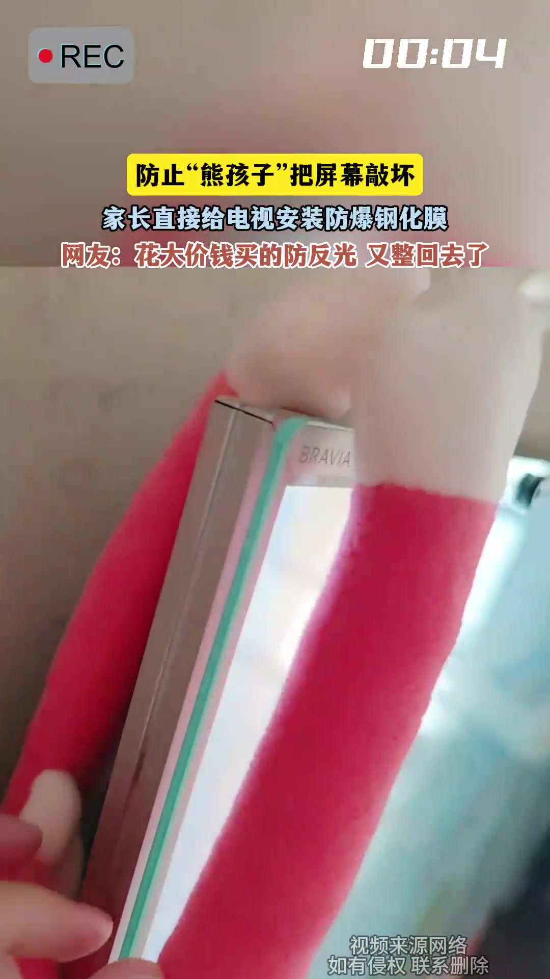 防止“熊孩子”把屏幕敲坏,家长直接给电视安装防爆钢化膜!