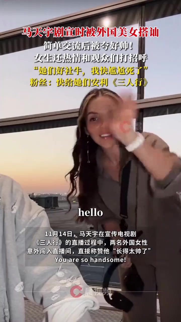 马天宇剧宣直播时被外国美女搭讪,被夸好帅!