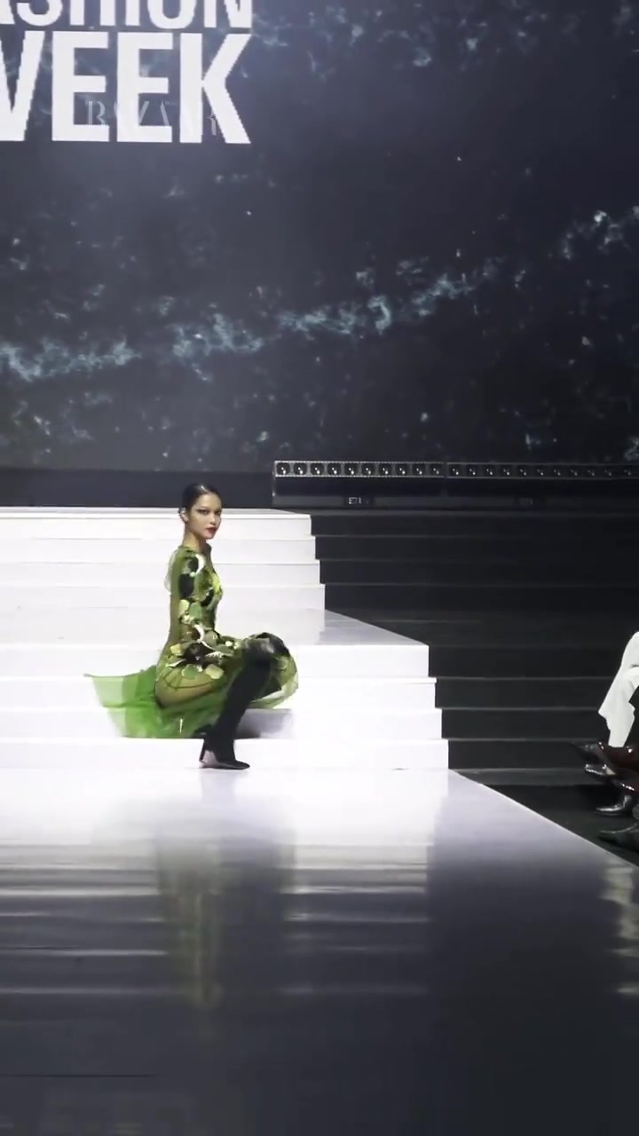 越南超模大赛,选手下楼梯摔倒处理极为顺畅。