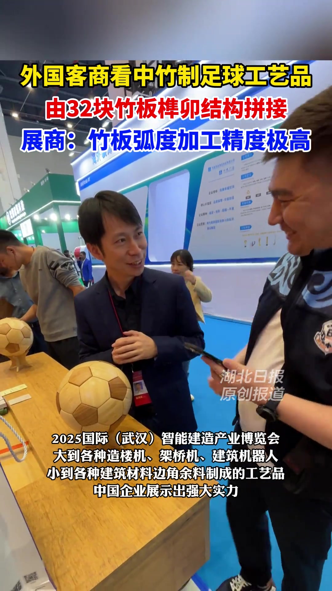 企业利用建材竹板边角料制作榫卯足球工艺品意外被外国客商看中