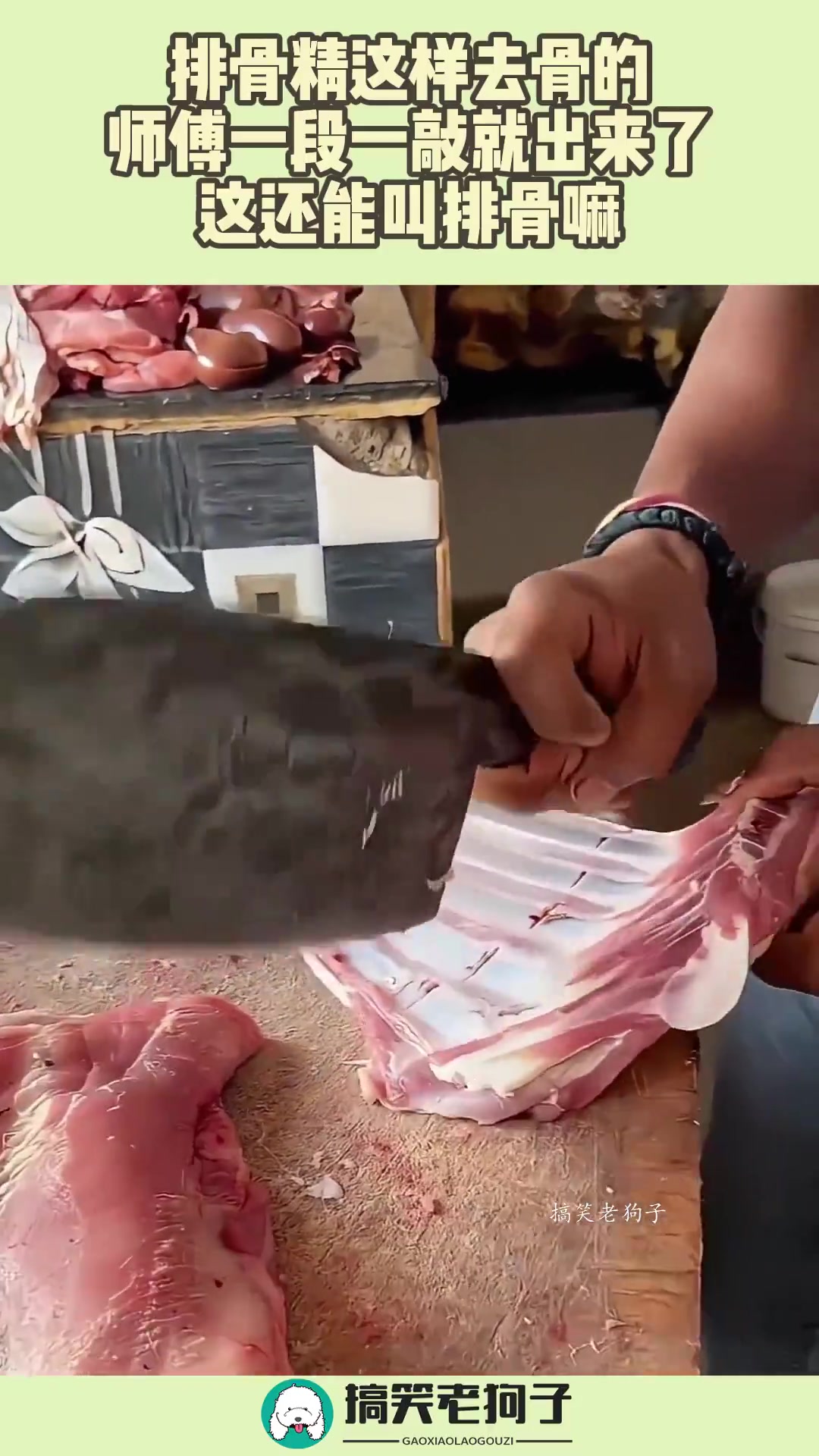 排骨竟这样去骨的,师傅一段一敲就出来了,这还能叫排骨嘛!