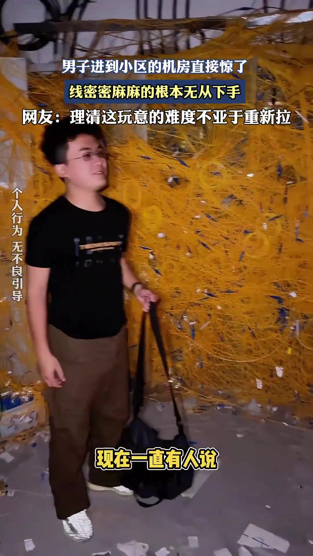 男子进到小区的机房直接惊了,线密密麻麻的根本无从下手