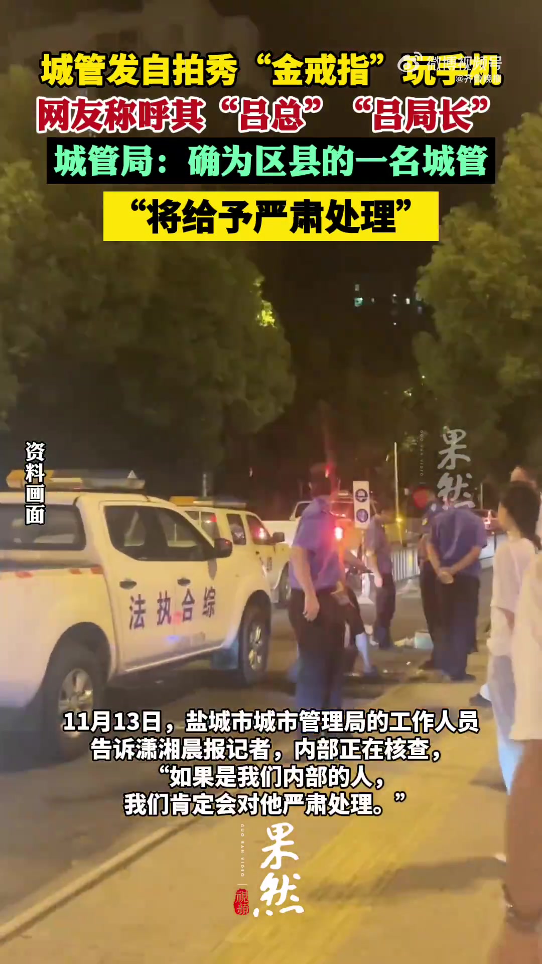 城管局回应城管上班自拍秀金戒指