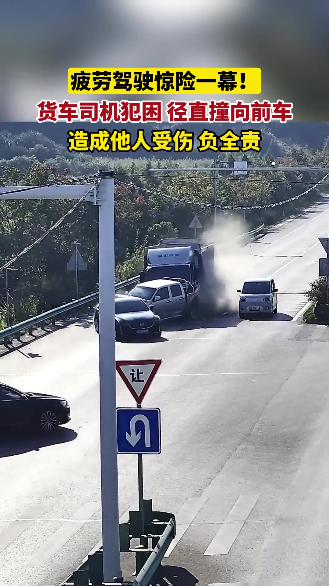 疲劳驾驶太可怕,货车司机犯困径直撞向前车!