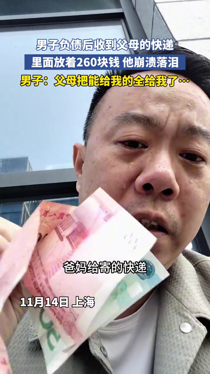 男子负债后收到父母的快递,里面放着260块钱,他崩溃落泪!