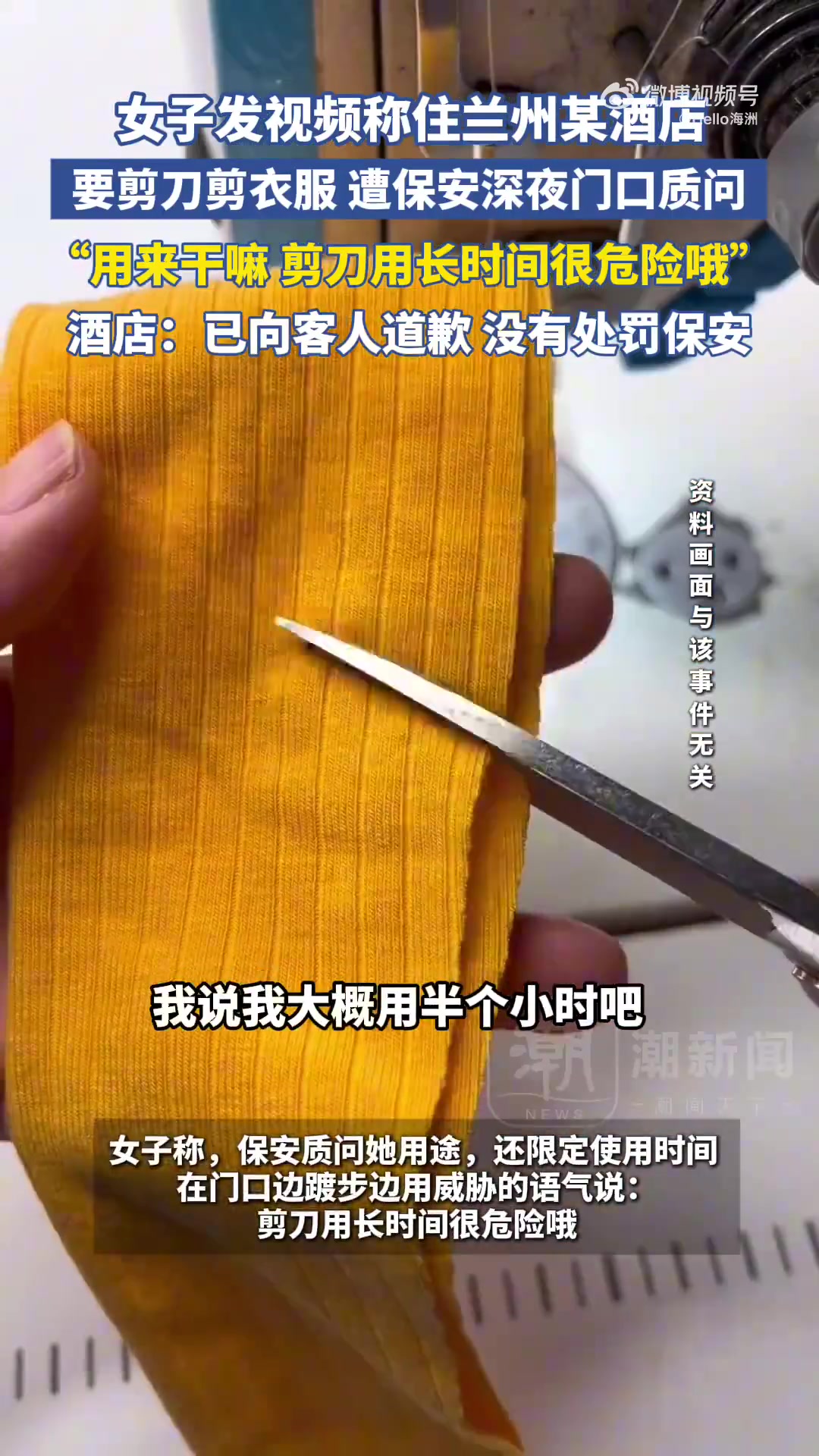 女子发视频称住兰州某酒店,要剪刀剪衣服 遭保安深夜门口质问!