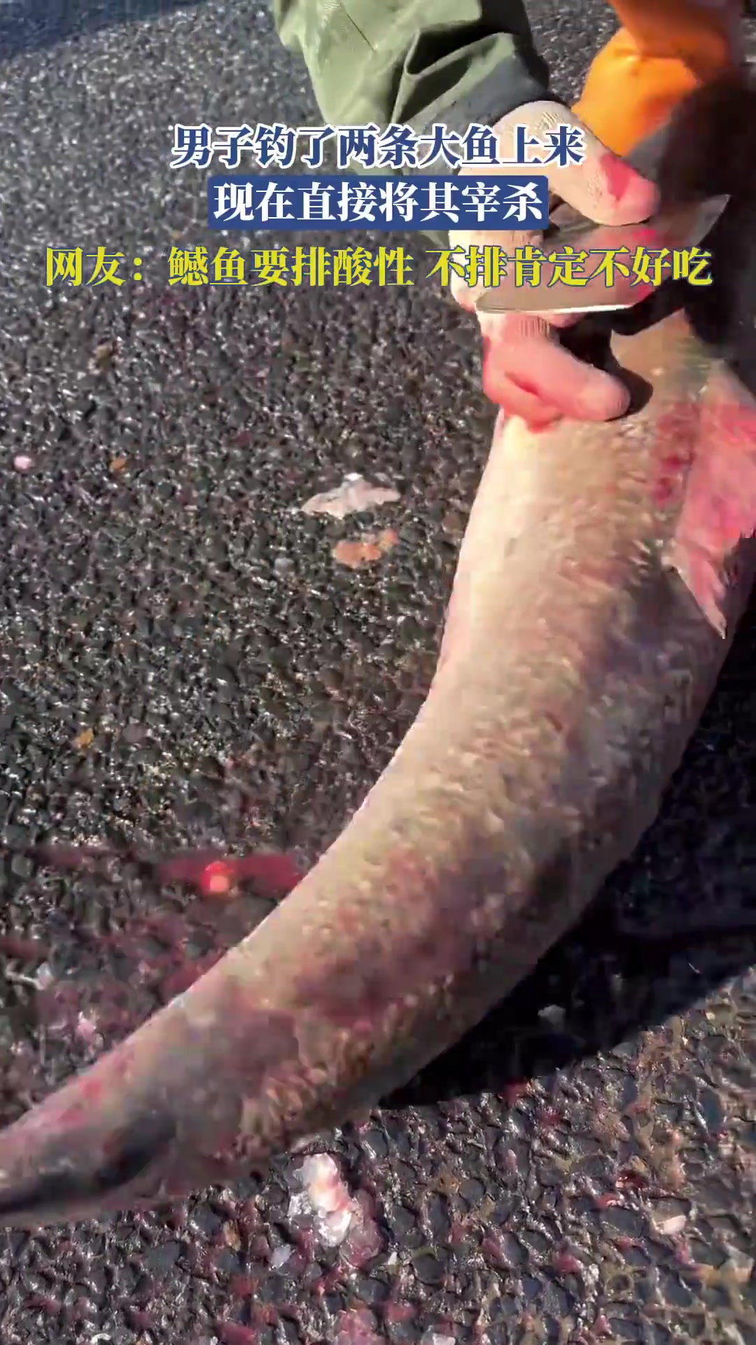 男子钓了两条大鱼上来,现在直接将其宰杀,网友:鳡鱼要排酸性