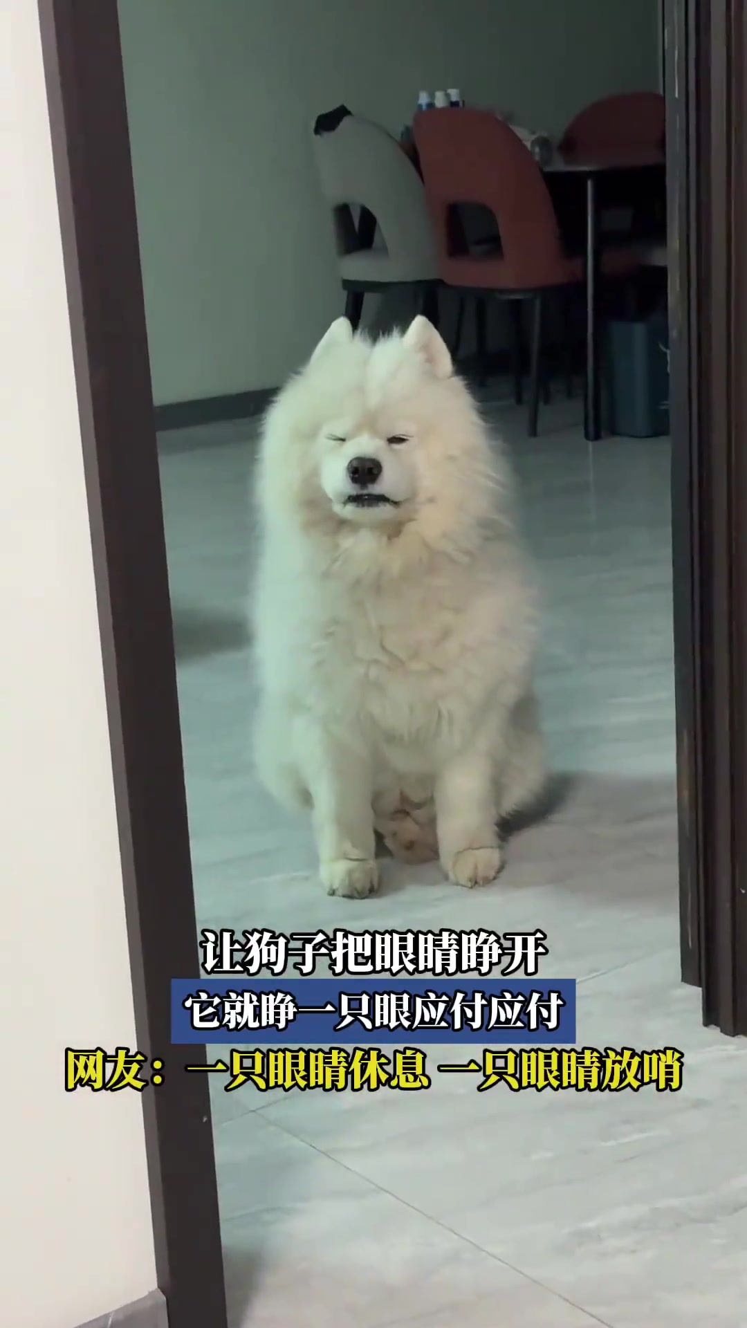 让狗子把眼睛睁开,它就睁一只眼应付应付