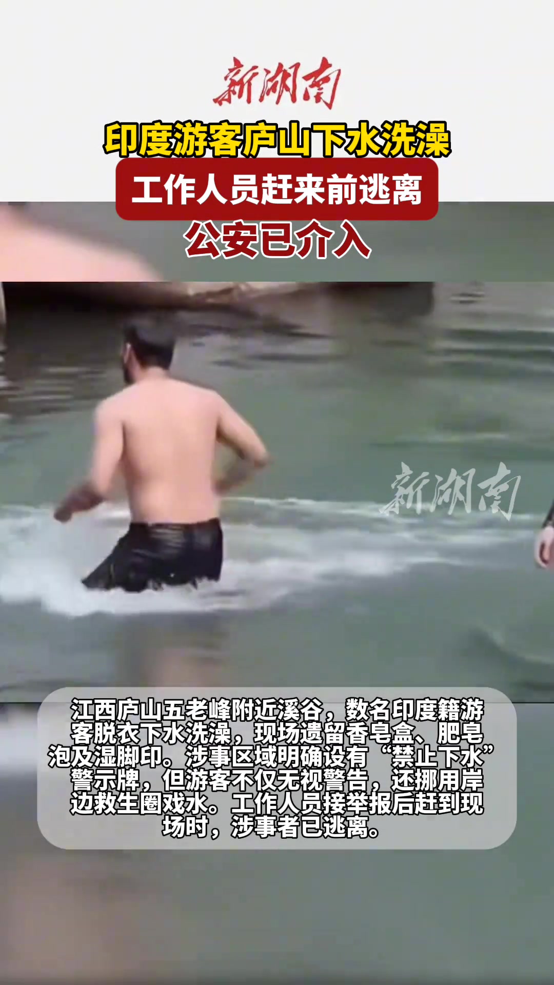 数名印度籍游客脱衣下水洗澡,涉事区域明确设有“禁止下水”警示
