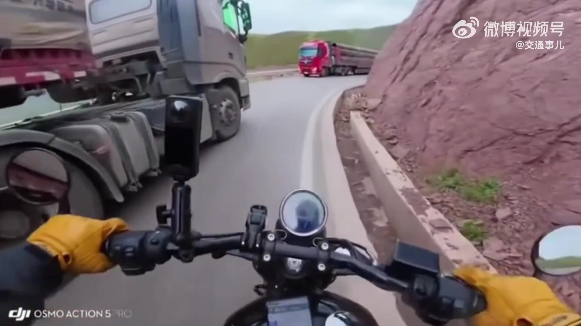 感谢大车不杀之恩吧,弯道右侧超车,骑手胆子太肥了