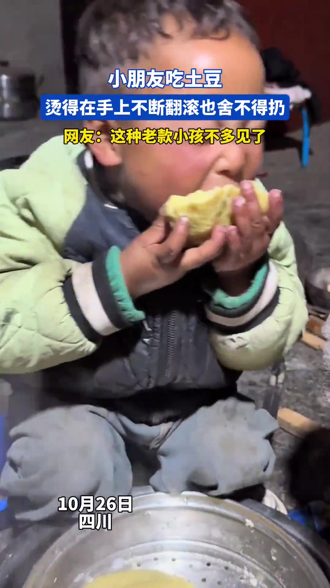 小朋友吃土豆,烫得在手上不断翻滚也舍不得扔