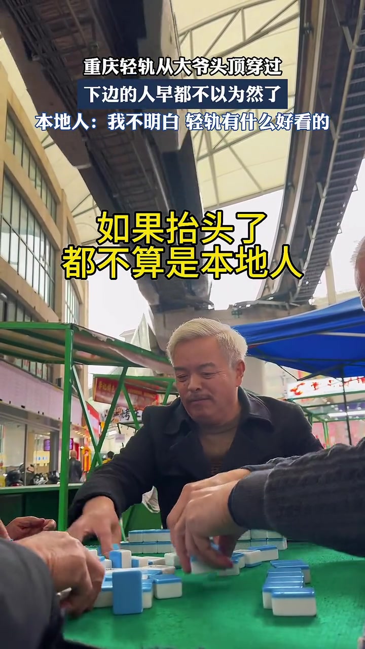 重庆轻轨从大爷头顶穿过,下边的人早都不以为然了!!!