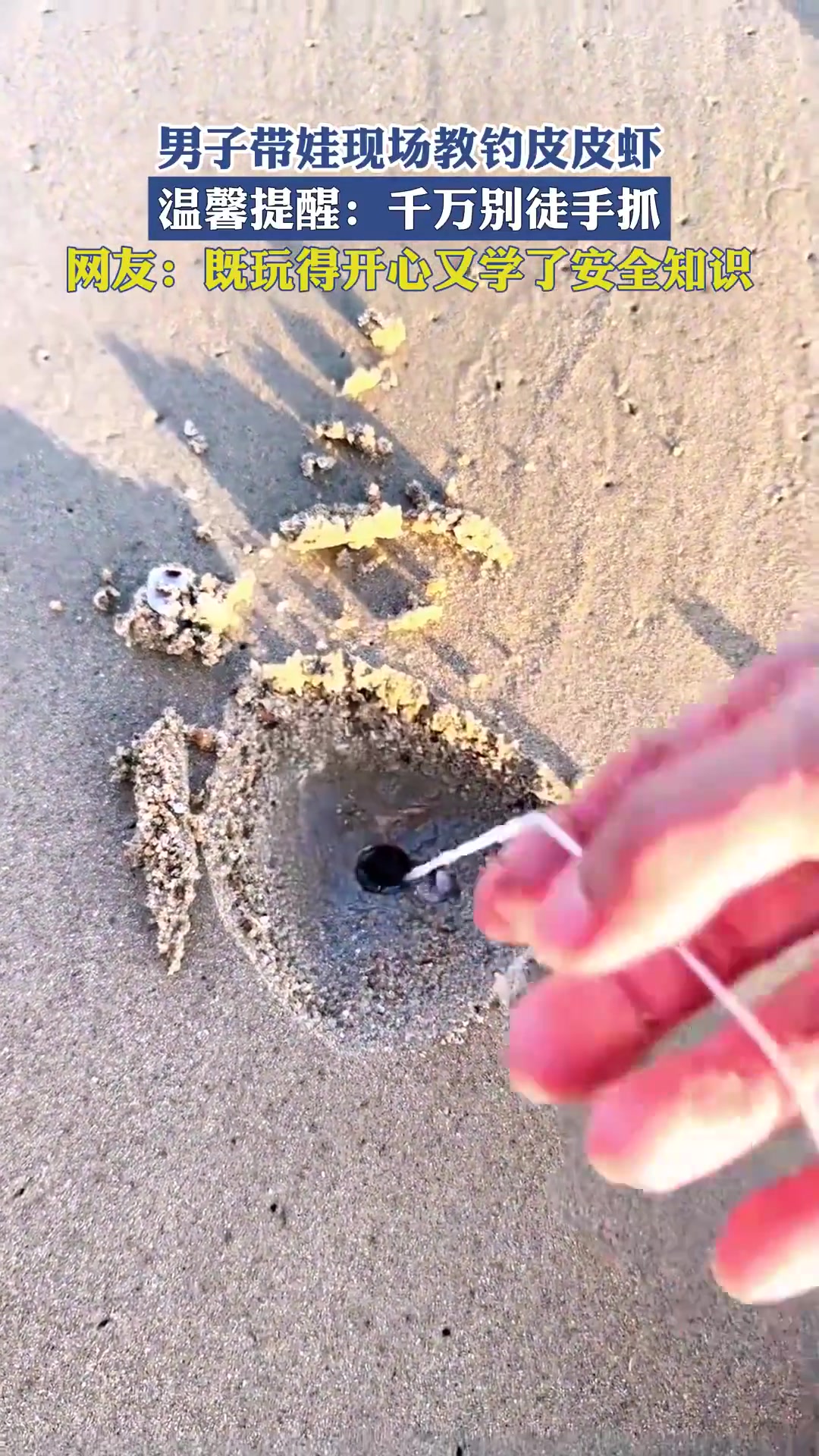 男子带娃现场教钓皮皮虾,温馨提醒:千万别徒手抓!