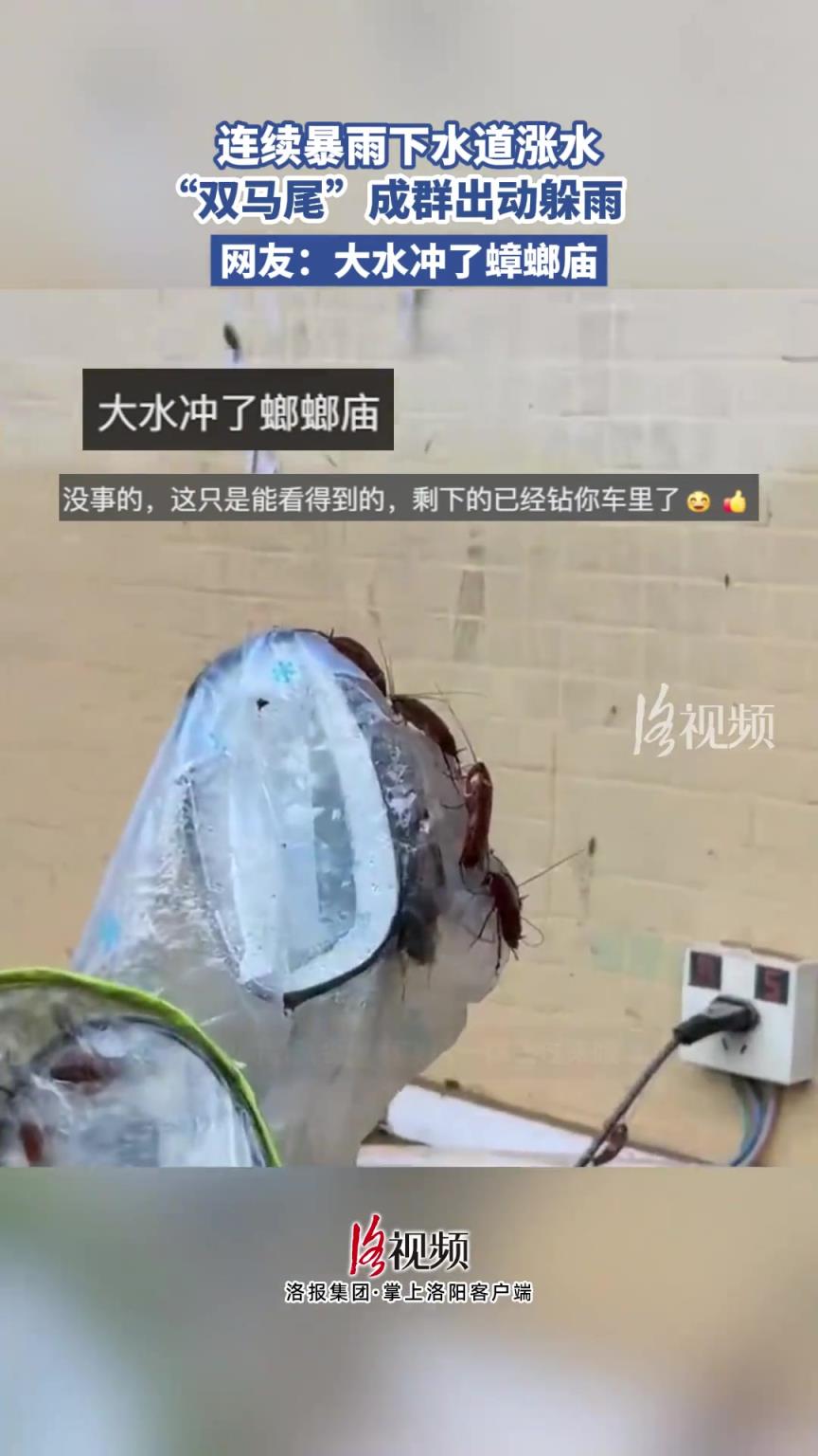 连续暴雨下水道涨水,“双马尾”成群出动躲雨。
