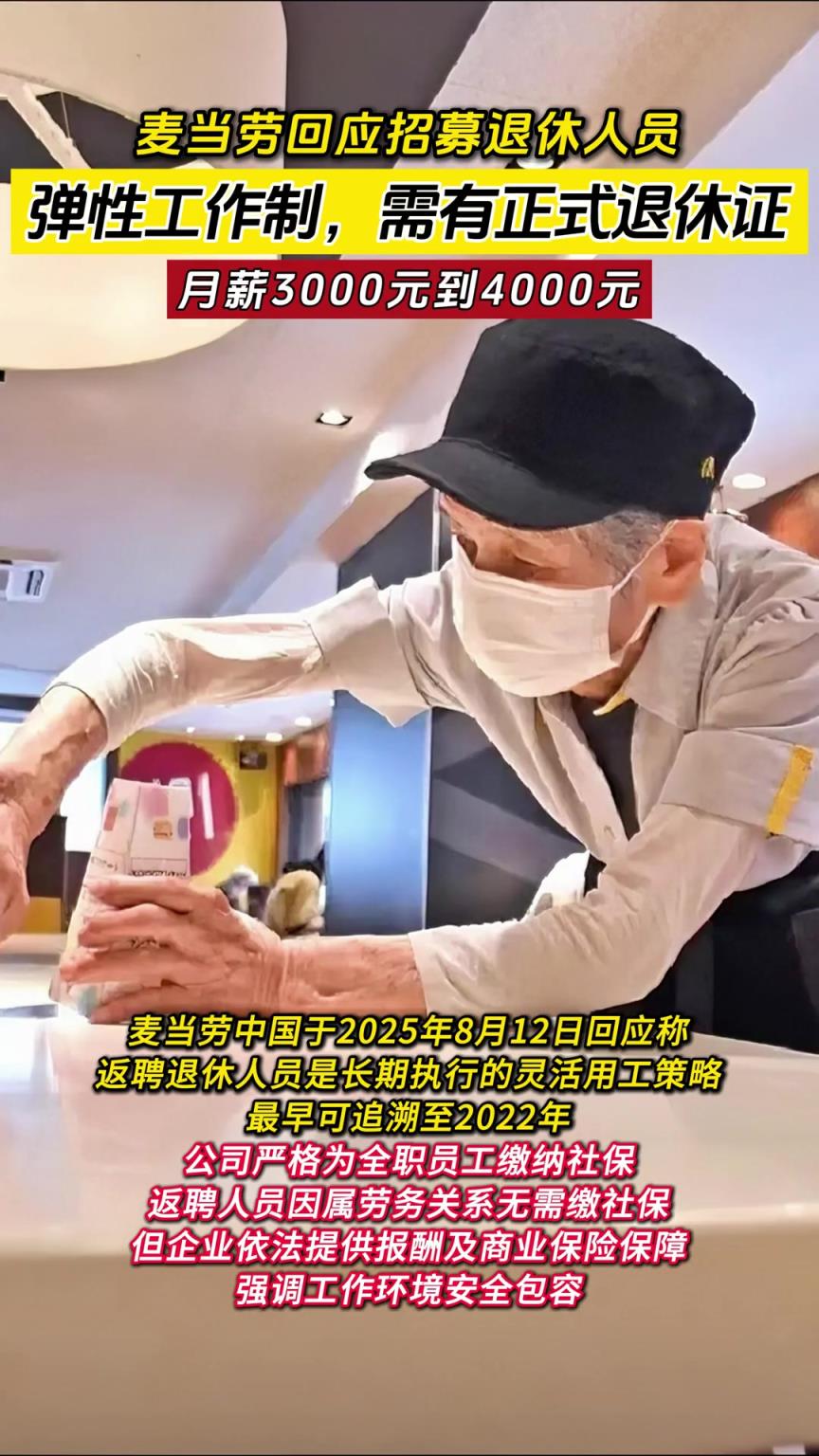 麦当劳回应招募退休人员:弹性工作,月薪3000元到4000元