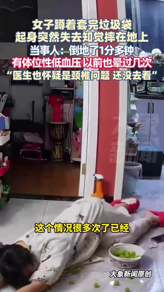女子蹲着套完垃圾袋,起身突然失去知觉摔在地上