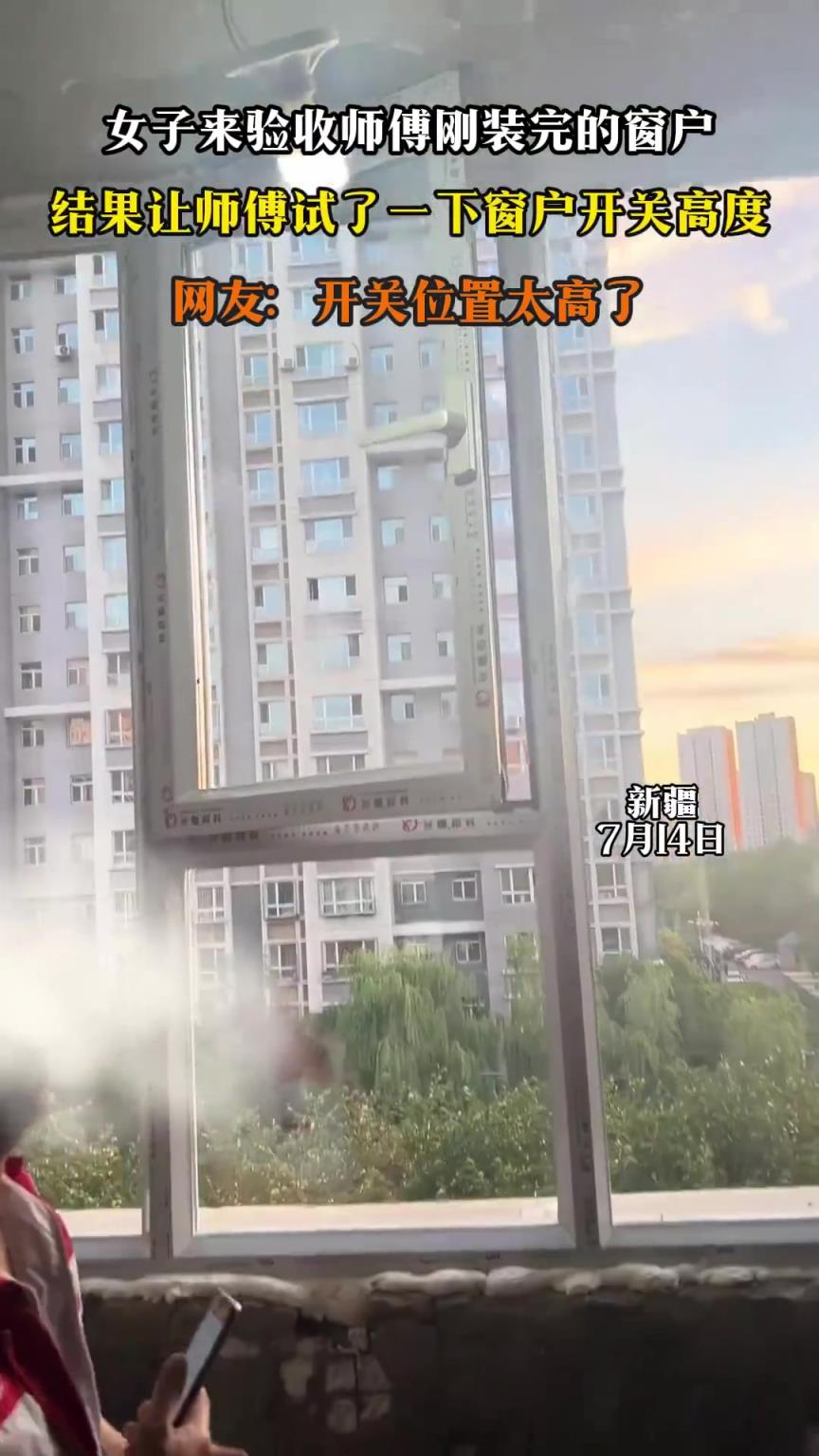 女子来验收师傅刚装完的窗户,结果让师傅试了一下窗户开关高度