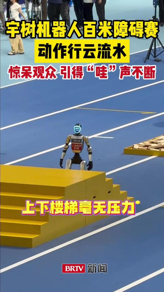 宇树机器人百米障碍赛,动作行云流水,惊呆观众引得“哇”声不断