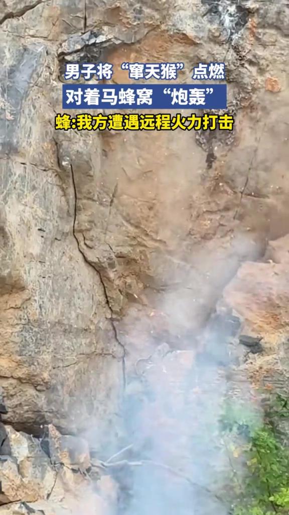 男子将“窜天猴”点燃,对着马蜂窝“炮轰”!