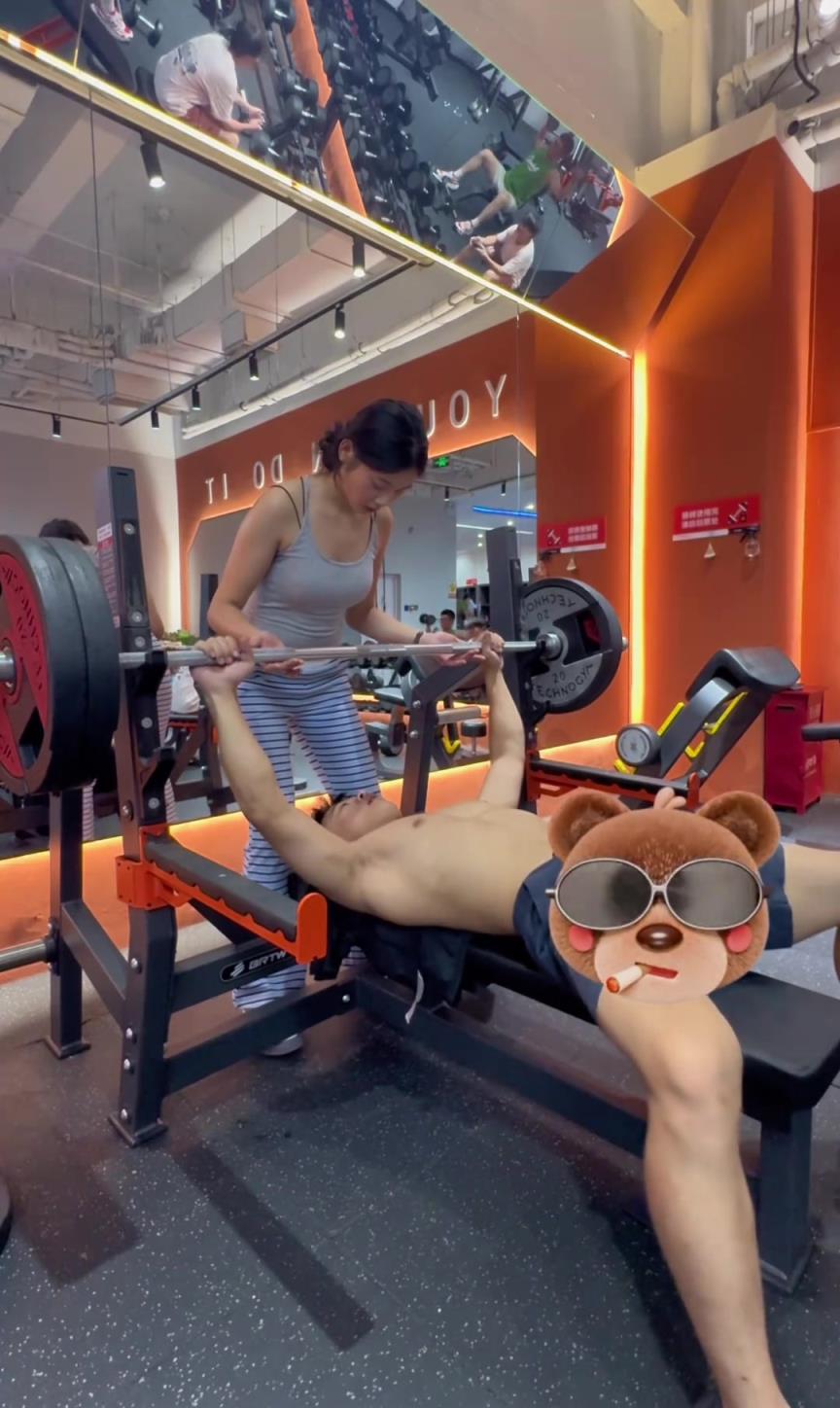 小姐姐健身房辅助时流口水滴到男生脸上,立马不对劲!