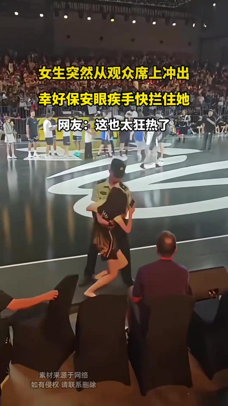女生突然从观众席上冲出,幸好保安眼疾手快拦住她