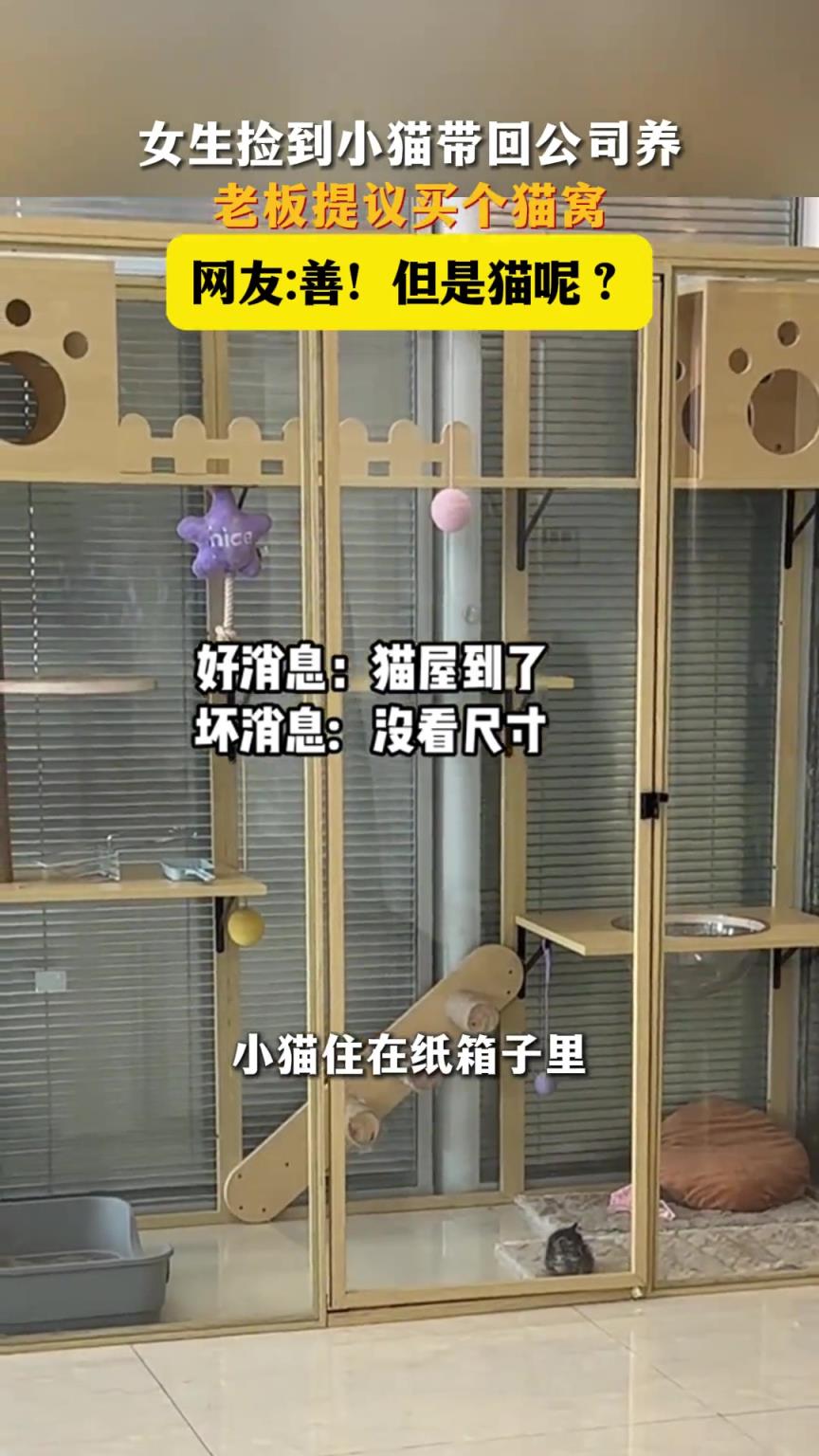 女生捡到小猫带回公司养,老板提议买个猫窝