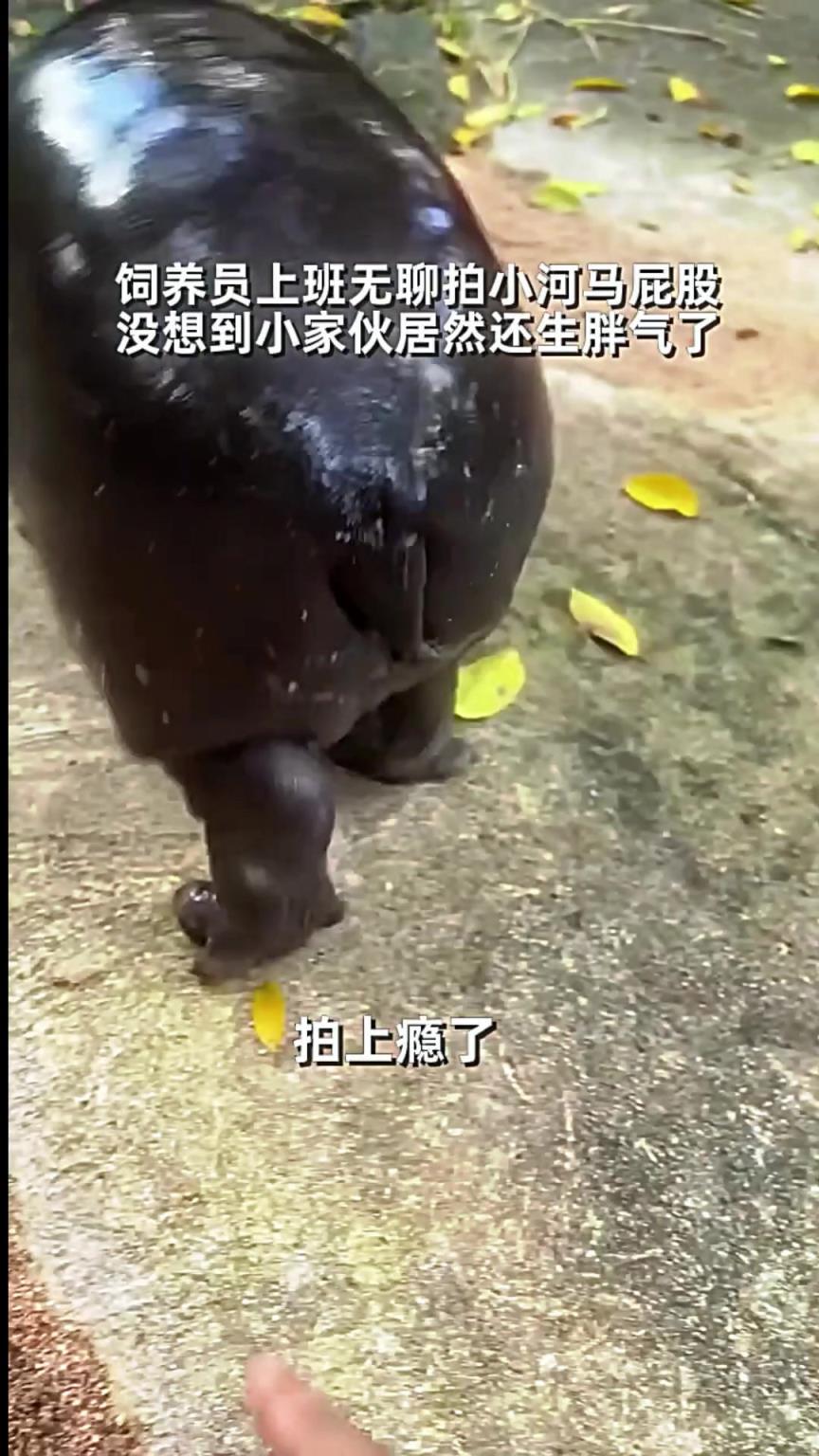 饲养员拍小号河马屁股,小河马生气,哄了好久才好