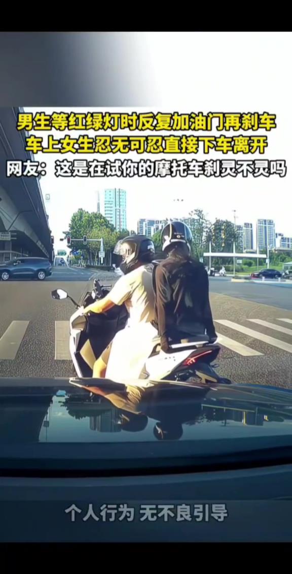 男生等红绿灯时反复加油门再刹车,车上女生忍无可忍